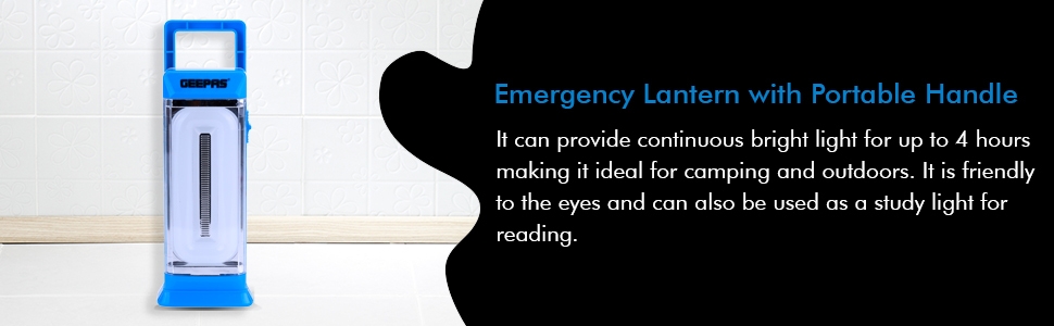 Geepas presents you with a Rechargeable Lantern; its brighter light and long-time performance, is ideal for camping as well as sudden power outages. This lamp uses 20 Pcs Hi-Power SMD LEDs and requires 8 to 10 hours to charge completely.